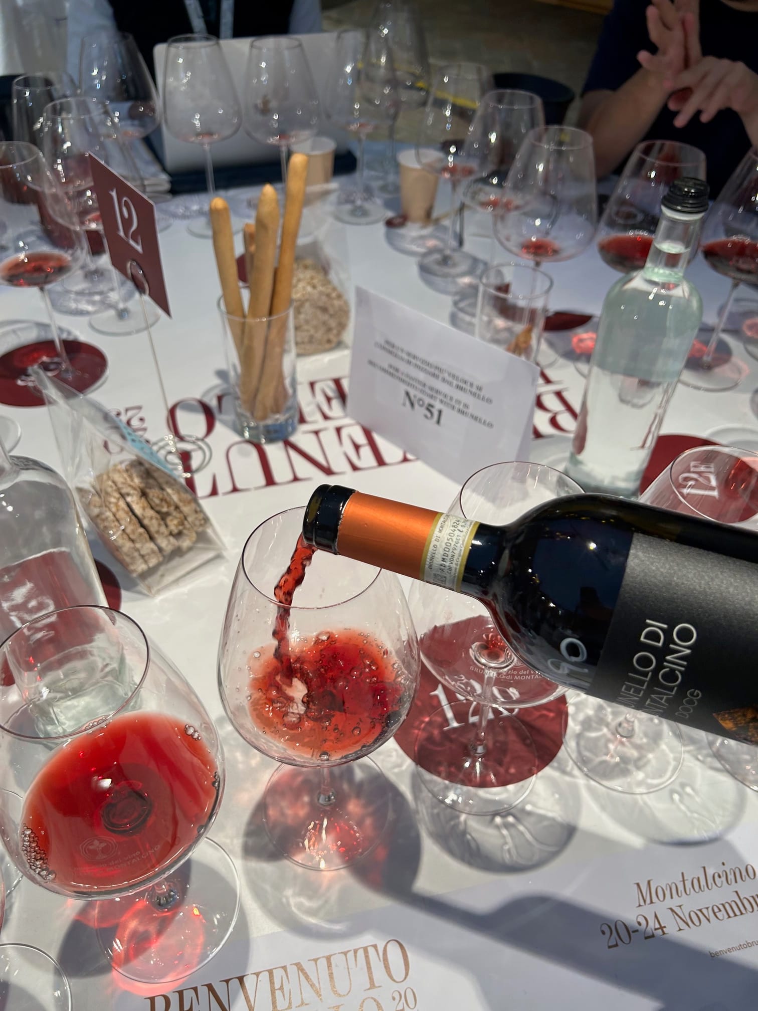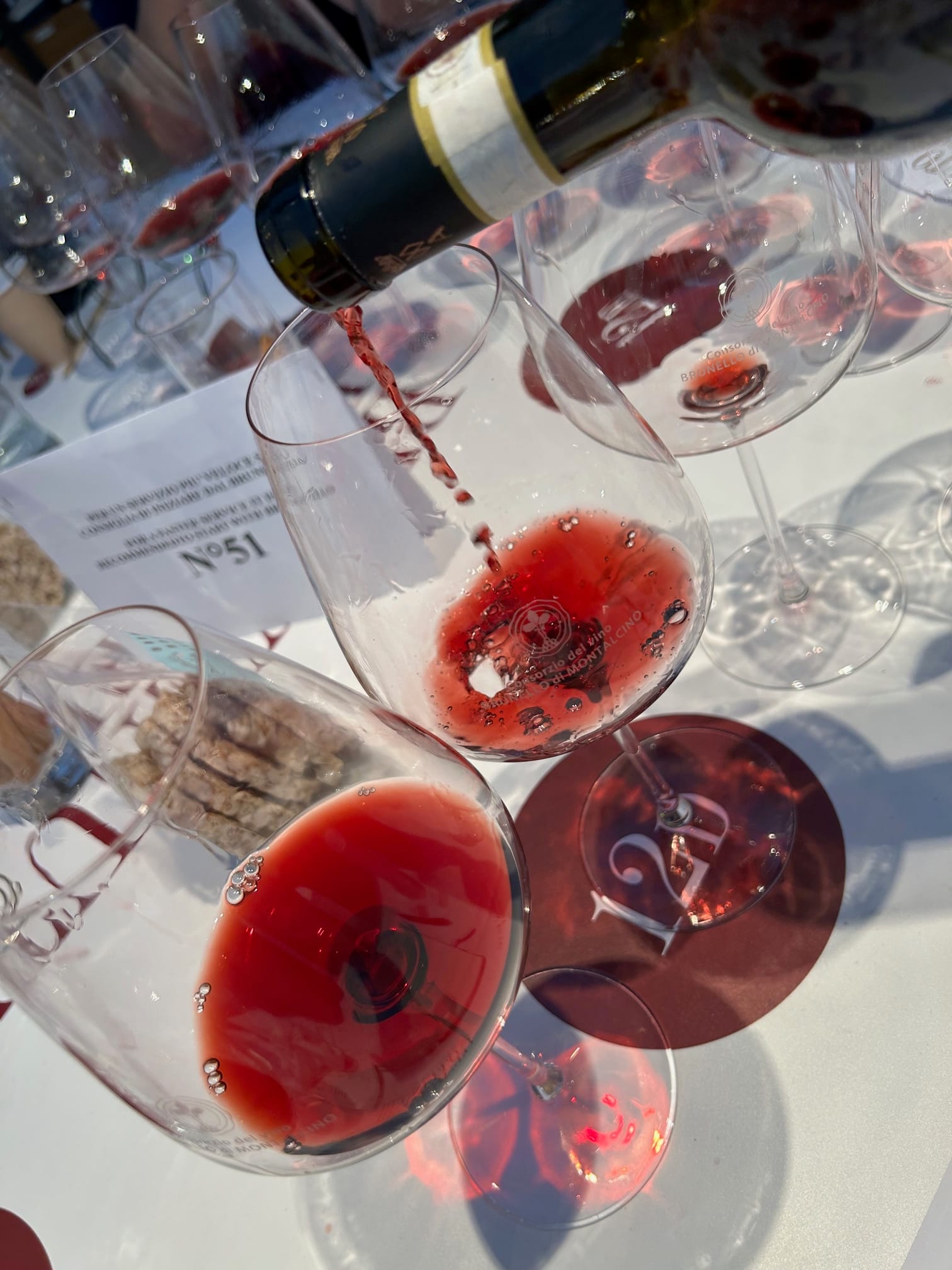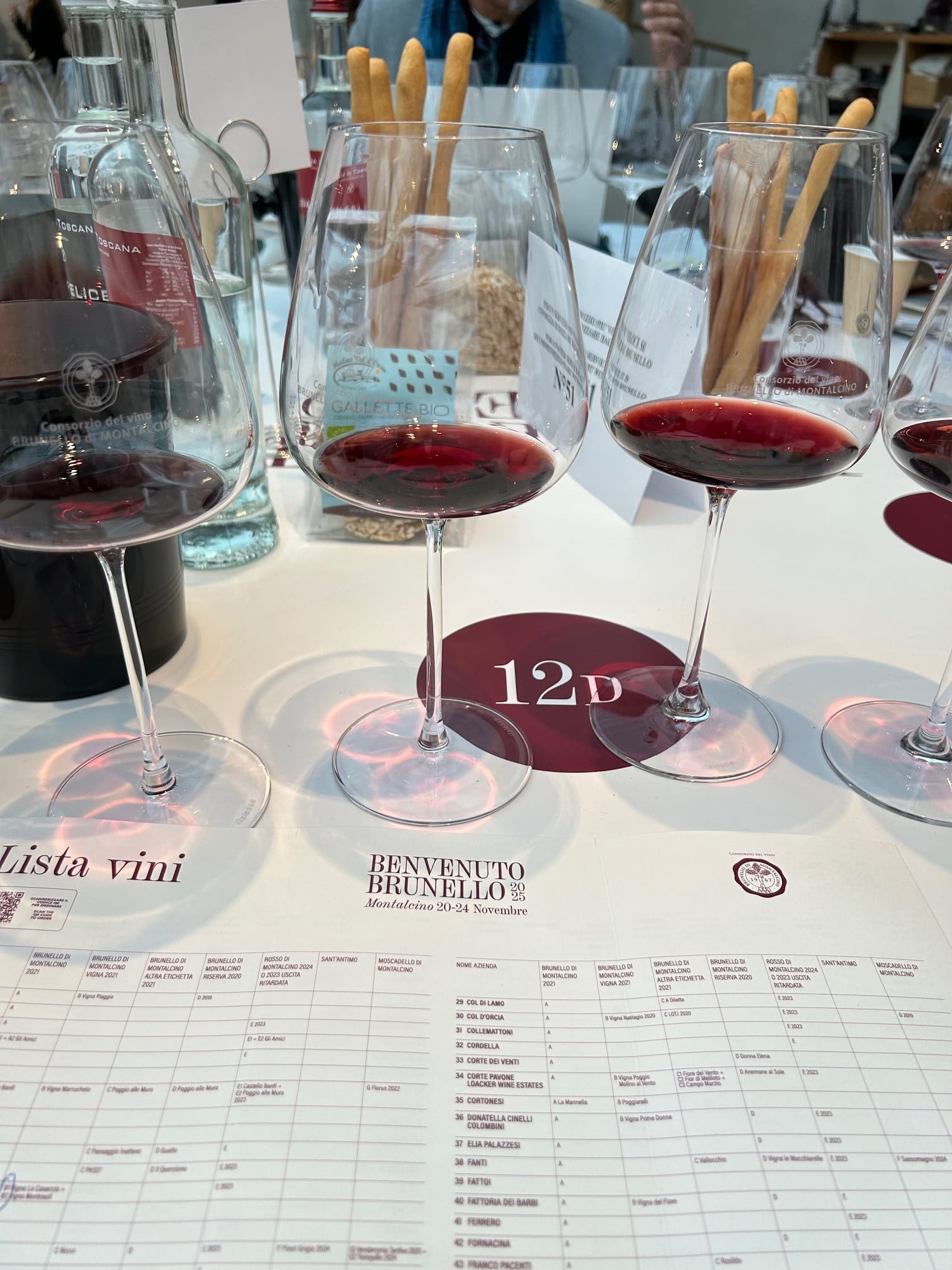 Je concentrais surtout ma dégustation de cette année sur Brunello 2021 (annata) et Brunello 2021 de terroirs spécifiques ou parcellaires. Dans son ensemble les vins étaient très homogènes, j’ai perçu une fraîcheur, belle acidité, une saveur délicate et une élégance que l'on retrouvait presque systématiquement dans chaque cuvée, avec un fruit bien marqué et de tanins travaillés. Certes, les vins provenant d’une parcelle ou un terroir spécifique se révélaient supérieurs et plus identitaires. Cela s’expliquait par le respect rigoureux des zones avec de microclimats et de terroirs précis : les vins des coteaux sud présentaient davantage de structure et de concentration, tandis que les Brunello des coteaux nord offraient une richesse aromatique plus intense ainsi qu’un équilibre gustatif plus harmonieux, grâce à son acidité et sa fraicheur plus intense.