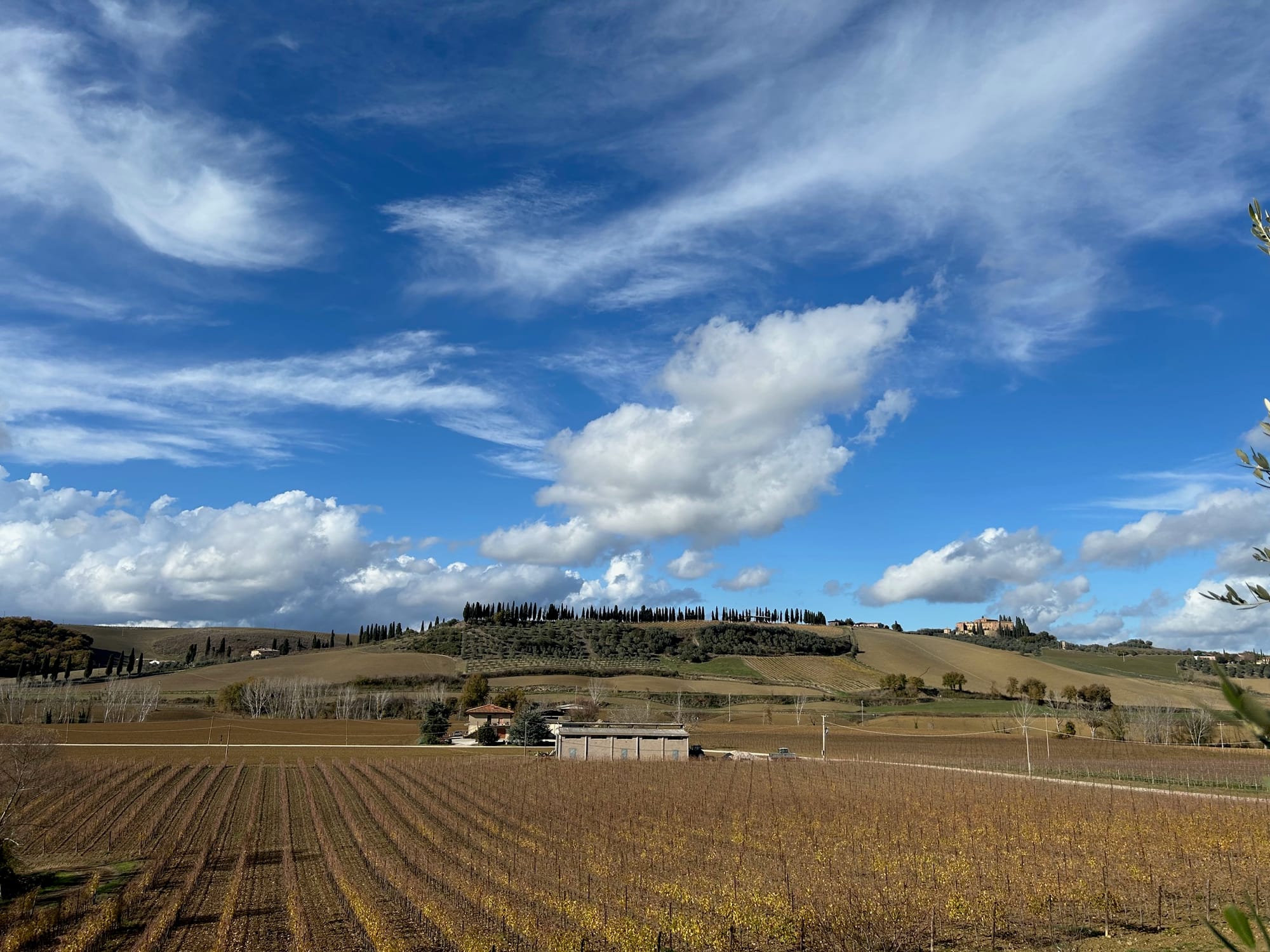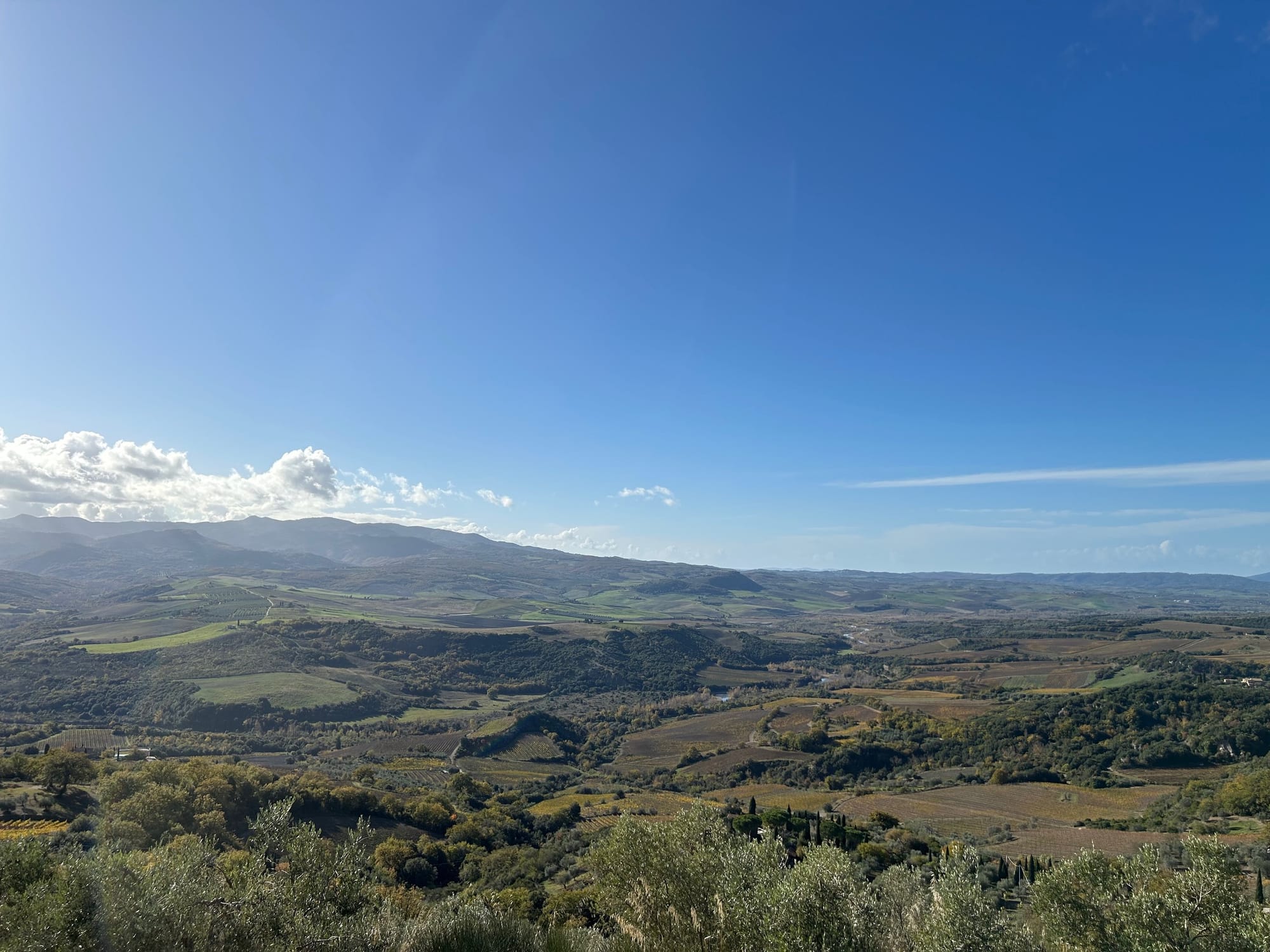 La situation géographique de Montalcino à 40 km au sud de Sienne, à 564 mètres d’altitude bordée par les trois vallées : l’Orcia, L’Asso et l’Ombrone constituent un territoire unique en termes de la biodiversité : de bois, d’oliveraies, de pâturages, de terres arables, bien évidemment la vigne et d’autres cultures et l’élevage.