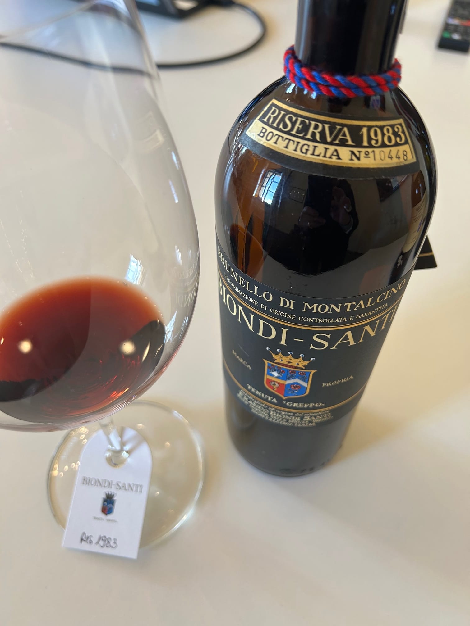 Lors de ma dernière visite, j’ai eu occasion de faire une mini verticale de ces vins d’exception en version livrables, en présence de Giampiero Bertolini, directeur général, et Federico Redi, directeur technique et oenologue. Nous avons dégusté : Rosso di Montalcino 2023, Brunello di Montalcino 2020, Brunello Riserva 2019 et pour conclure, la mythique Riserva 1983 « La Storica ».
