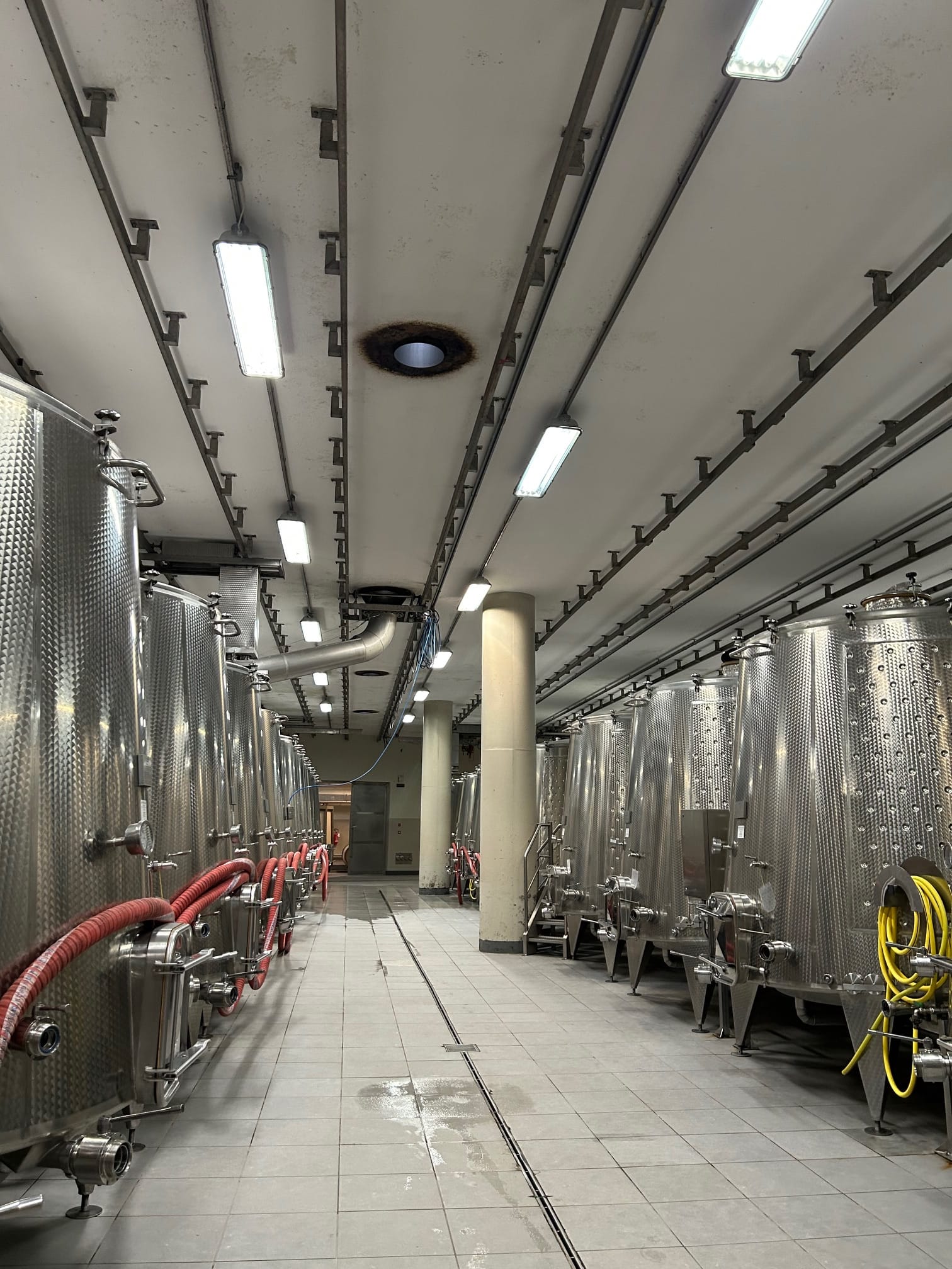 La conception de la cuverie repose sur la gravité afin de préserver au maximum la qualité de raisins après la vendange, en limitant ainsi, l’usage de pompes pour traiter les raisins et les moûts.