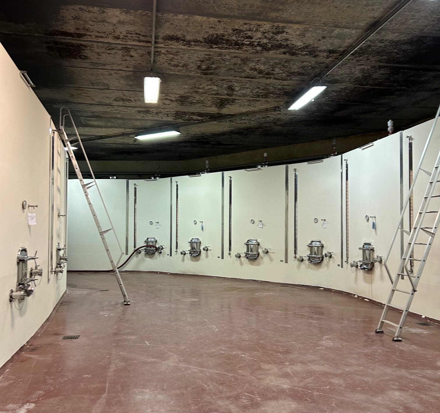 Inauguré au milieu des années 2000, le chai de Castello di Fonterutoli, conçu par Agnèse Mazzei, s’inscrit dans la tendance des « cathédrales souterraines » toscanes, avec une architecture discrète, partiellement enterrée dans la colline pour mieux se fondre dans le paysage, sans lui procurer, quel que soit le préjudice. Les deux tiers de la structure sont souterrains, ce qui garantit une stabilité naturelle de la température et de l’hygrométrie, élément clé pour de longs élevages des vins. Chai ultra moderne et spacieux, ce qui permet un vrai travail d’orfèvre pour élaborer chaque cuvée de la maison en respectant les caractéristiques du cépage sur chaque parcelle respective.