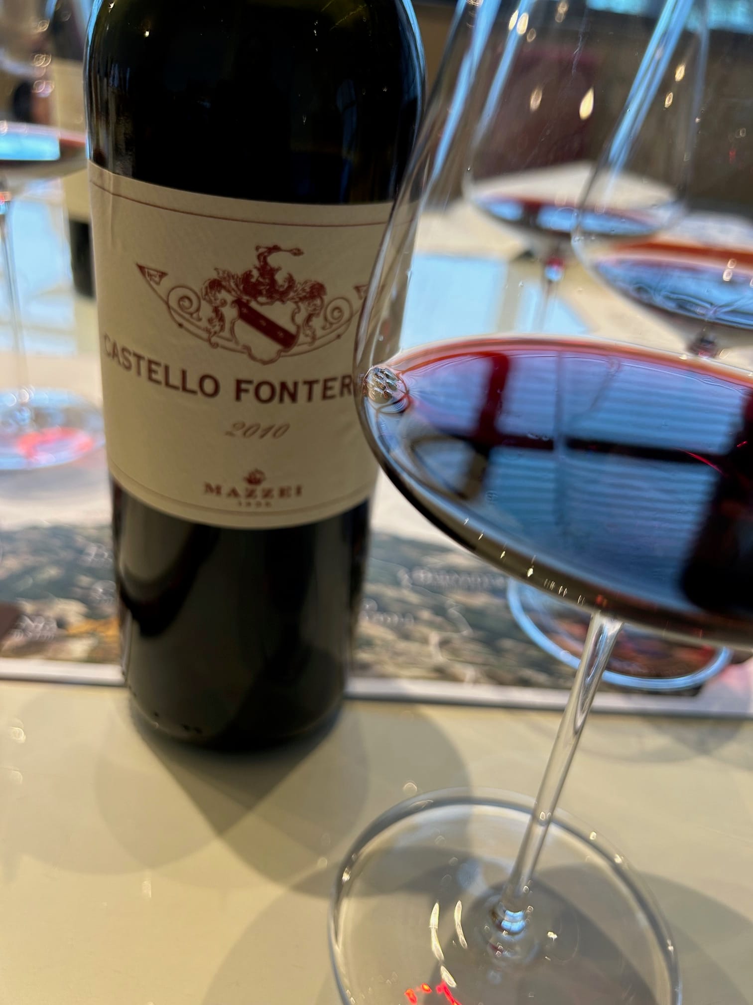 Pour finir la dégustation, il a fallu un vin qui raconte son histoire à travers des âges, donc cette cuvée c’est imposé naturellement, Castello Fonterutoli 2010, le premier Gran Selezione de Mazzei. Le vin parfaitement à l’apogée avec des notes tertiaires, note d’épices, de tabac, de tanins affinés avec encore une belle fraicheur, le vin n’a rien perdu de sa structure et de sa vivacité.